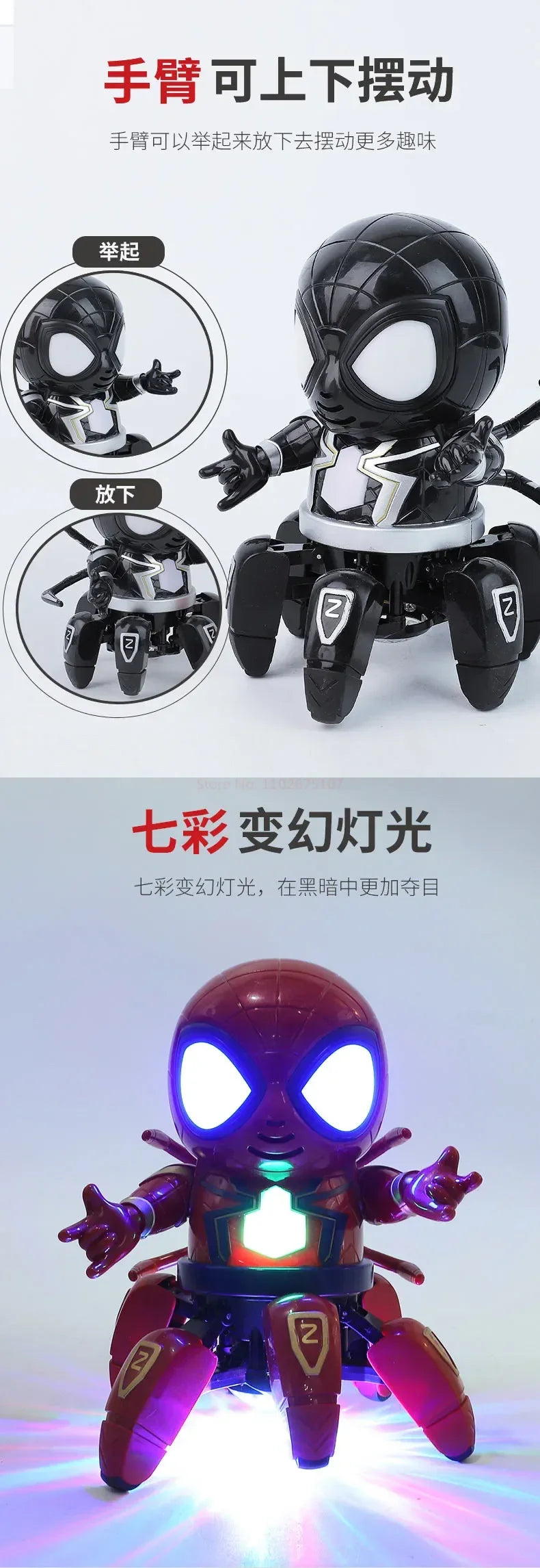 Deze Dansende Spider Man Robot Met Muziek En Licht Voor Kinderen is niet alleen een geweldig cadeau, maar stimuleert ook creativiteit en plezier in spel. Het is een fantastische manier om kinderen actief te houden terwijl ze hun favoriete superheld tot leven zien komen. Zorg dat je deze unieke robot vandaag nog toevoegt aan je collectie en laat het speelplezier beginnen!