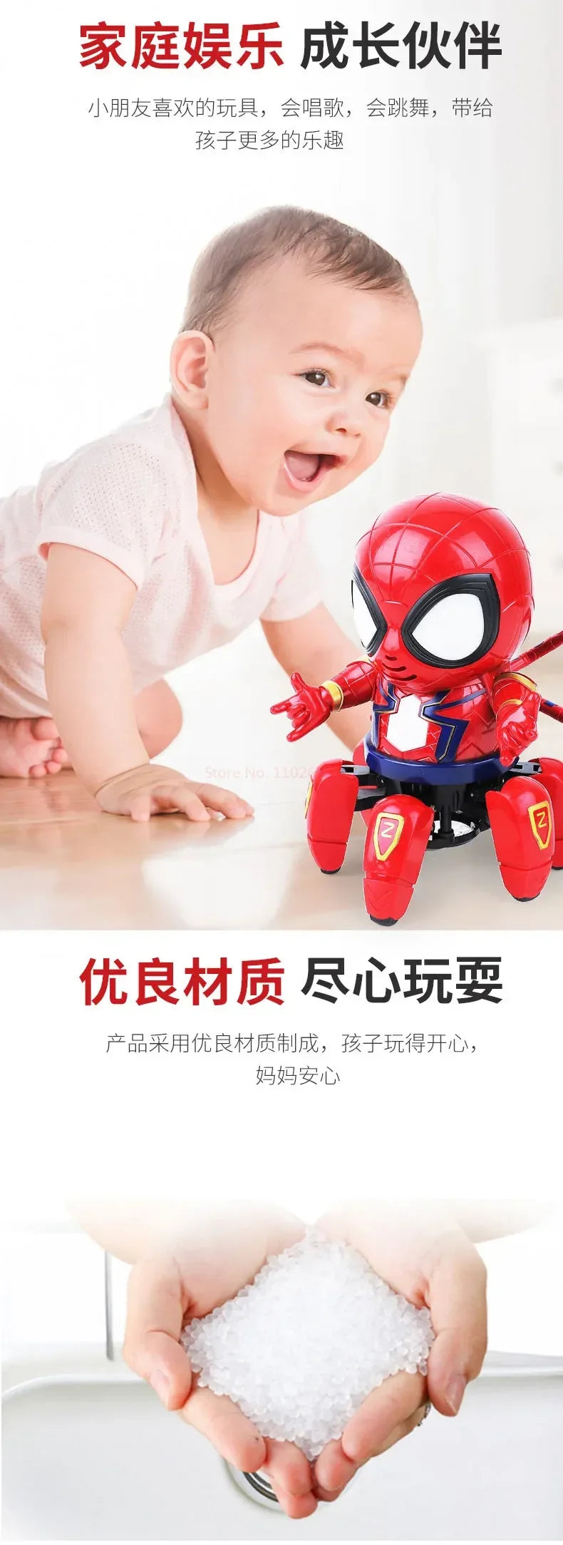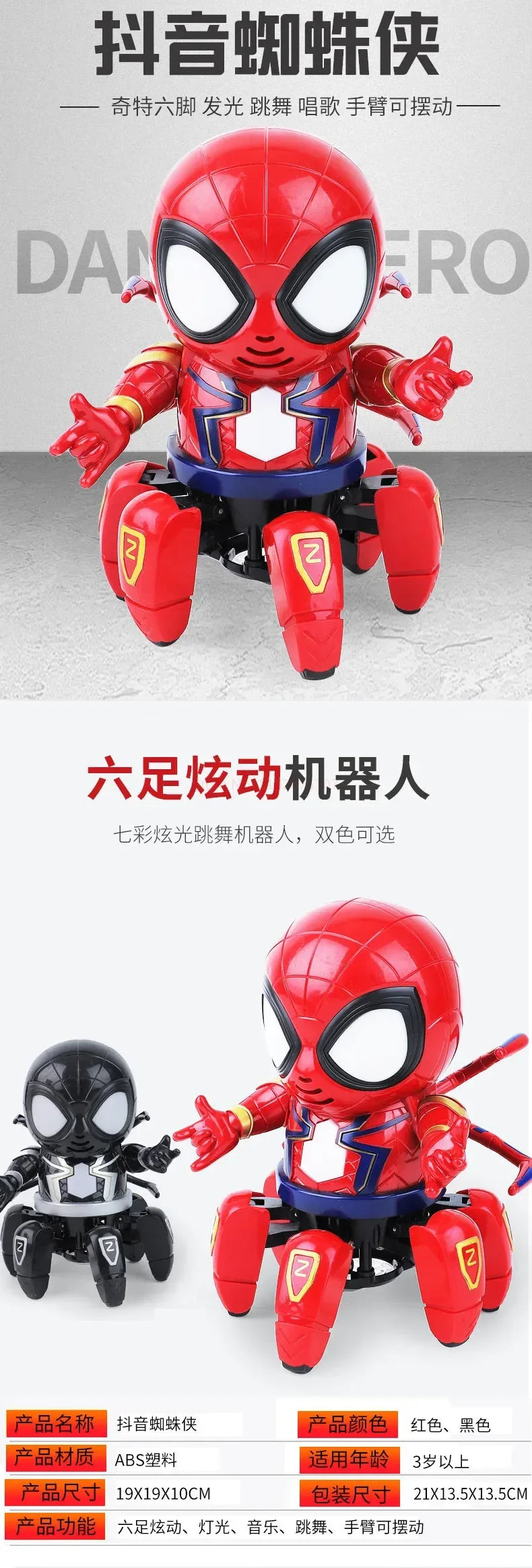 De Dansende Spider Man Robot Met Muziek En Licht Voor Kinderen is een boeiende speelgoedrobot die perfect is voor jonge fans van Spider Man. Deze interactieve robot combineert dansbewegingen met vrolijke muziek en kleurrijke lichten, wat zorgt voor urenlang speelplezier. Het ontwerp is kindvriendelijk en stimuleert de verbeelding en motorische vaardigheden van kinderen.