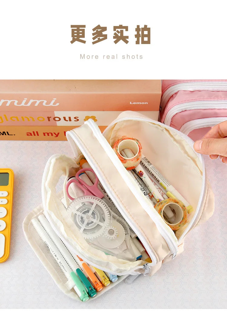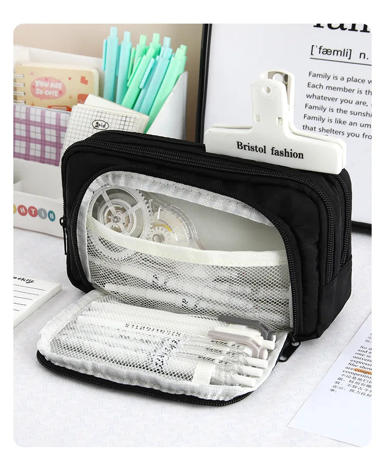 - Ruime opbergcapaciteit: Dankzij het slimme ontwerp biedt dit etui voldoende ruimte voor pennen, potloden, markeerstiften en kleine accessoires.